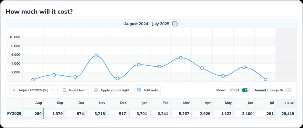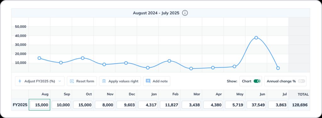 - Connect to a graph or chart: Visualize the impact of your adjustments instead of staring at a sea of numbers. If you’re a LivePlan user, you can actually adjust your forecasts using the graph instead of changing numbers.