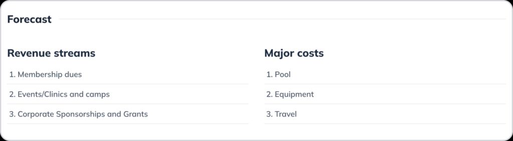 Don’t overcomplicate this exercise; just spend a few minutes listing potential revenue streams and expenses. If you’re having trouble, try using an AI tool like our LivePlan Assistant to generate ideas.