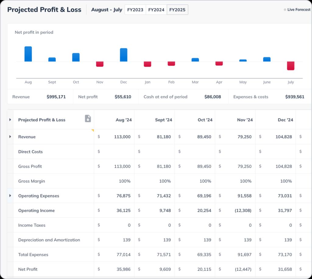 Again if you’re using LivePlan to create your forecasts, your financial statements will also be generated as you add information. No additional work on your part.