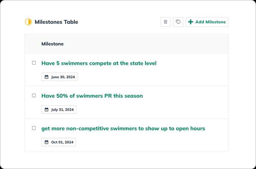 - Milestones