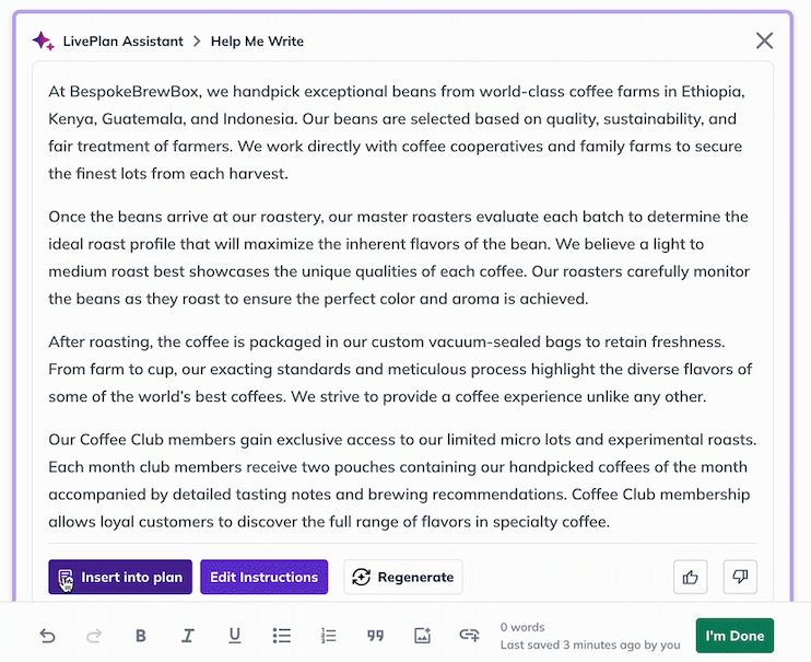 Remember, you can always come back and edit these AI-generated sections even after you add them to your Plan.